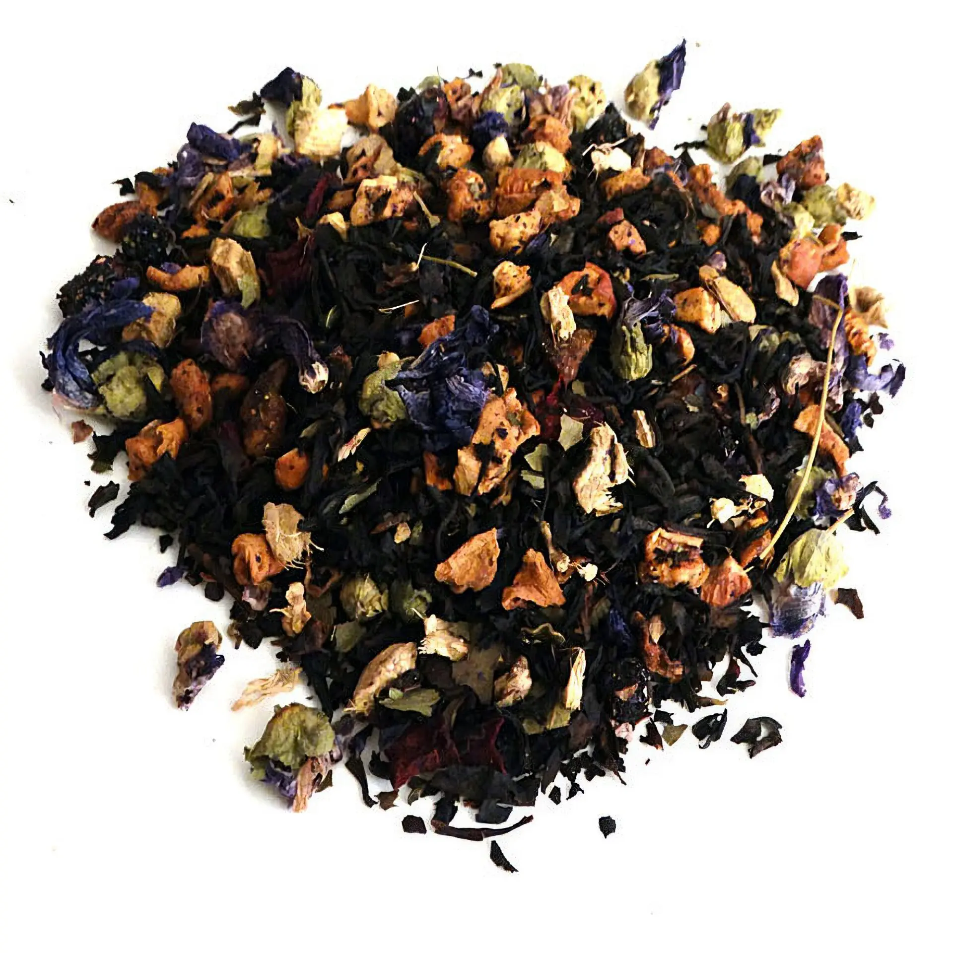 Eine raffinierte Kombination aus Schwarztee, Heidelbeeren und Acai, vereint mit einer würzigen Ingwer-Note.