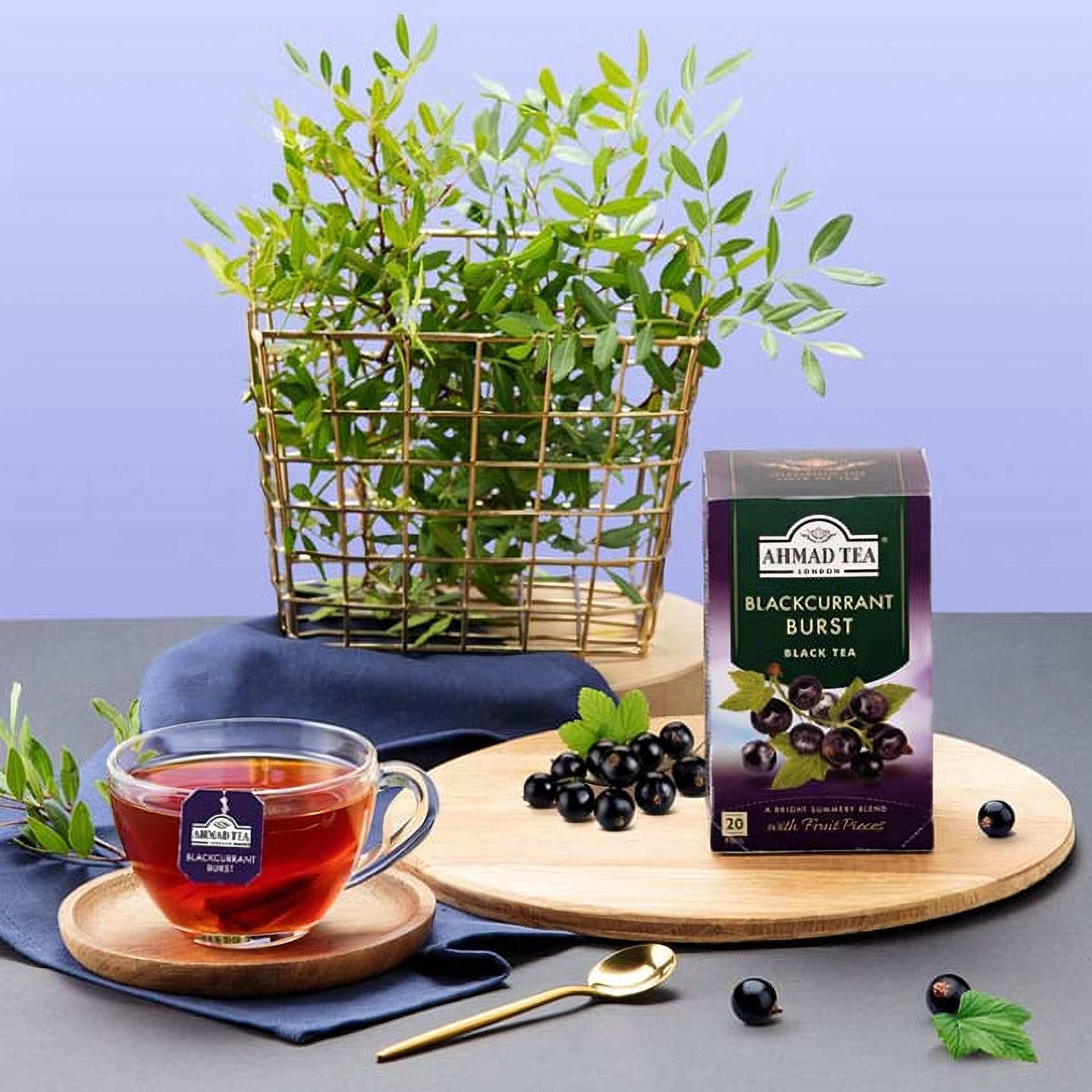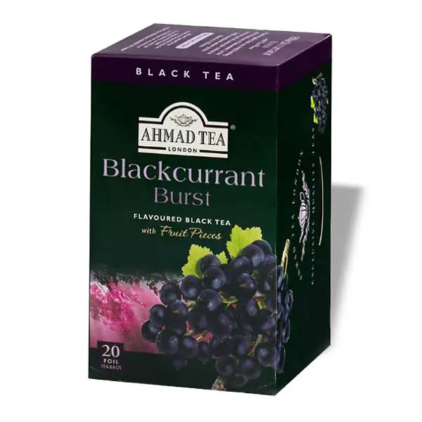 Ein Bild von Ahmad Tea - Blackcurrant Burst - 20 Teebeutel à 2g, in der Kategorie Schwarz Tee aromat. Tee im Teebeutel kaufen