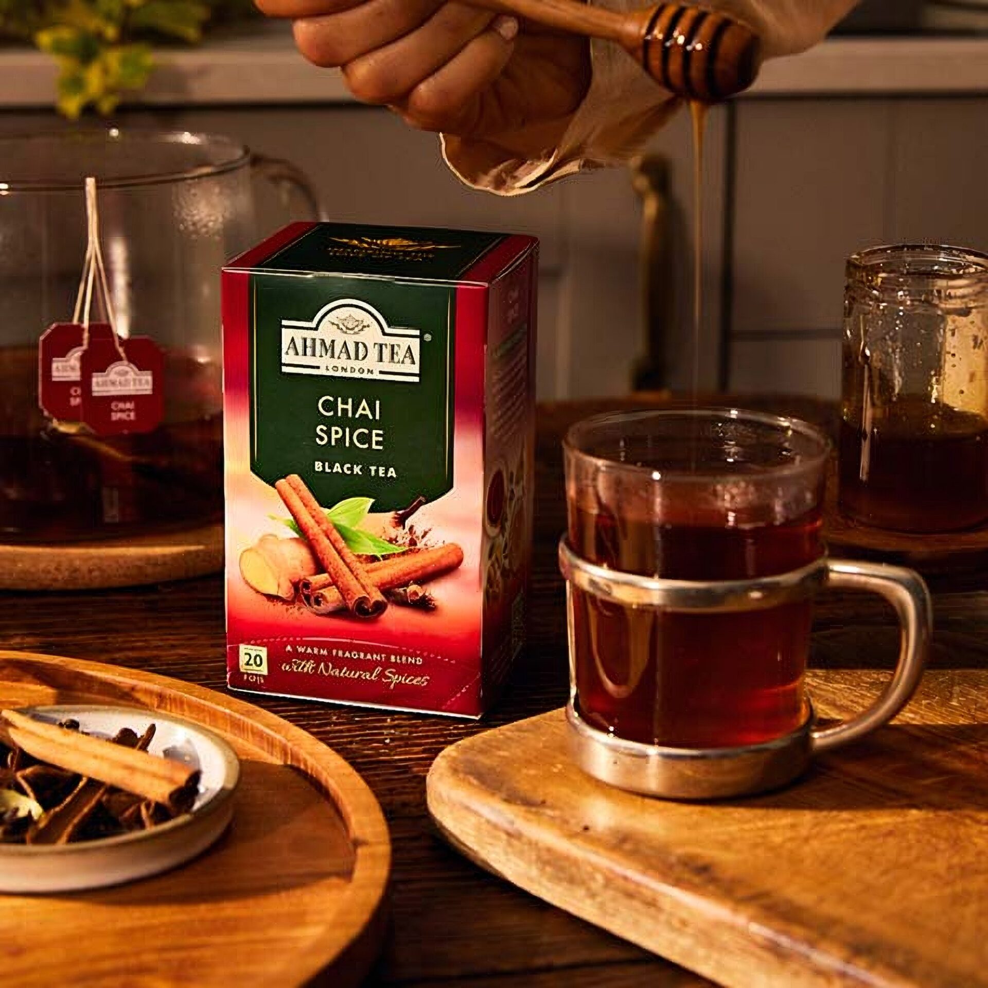 Jede Packung enthält 20 aromageschützte Teebeutel, die einzeln in Folie verpackt sind. So bleibt der Chai Spice Tee bei jeder Tasse frisch und intensiv im Geschmack.