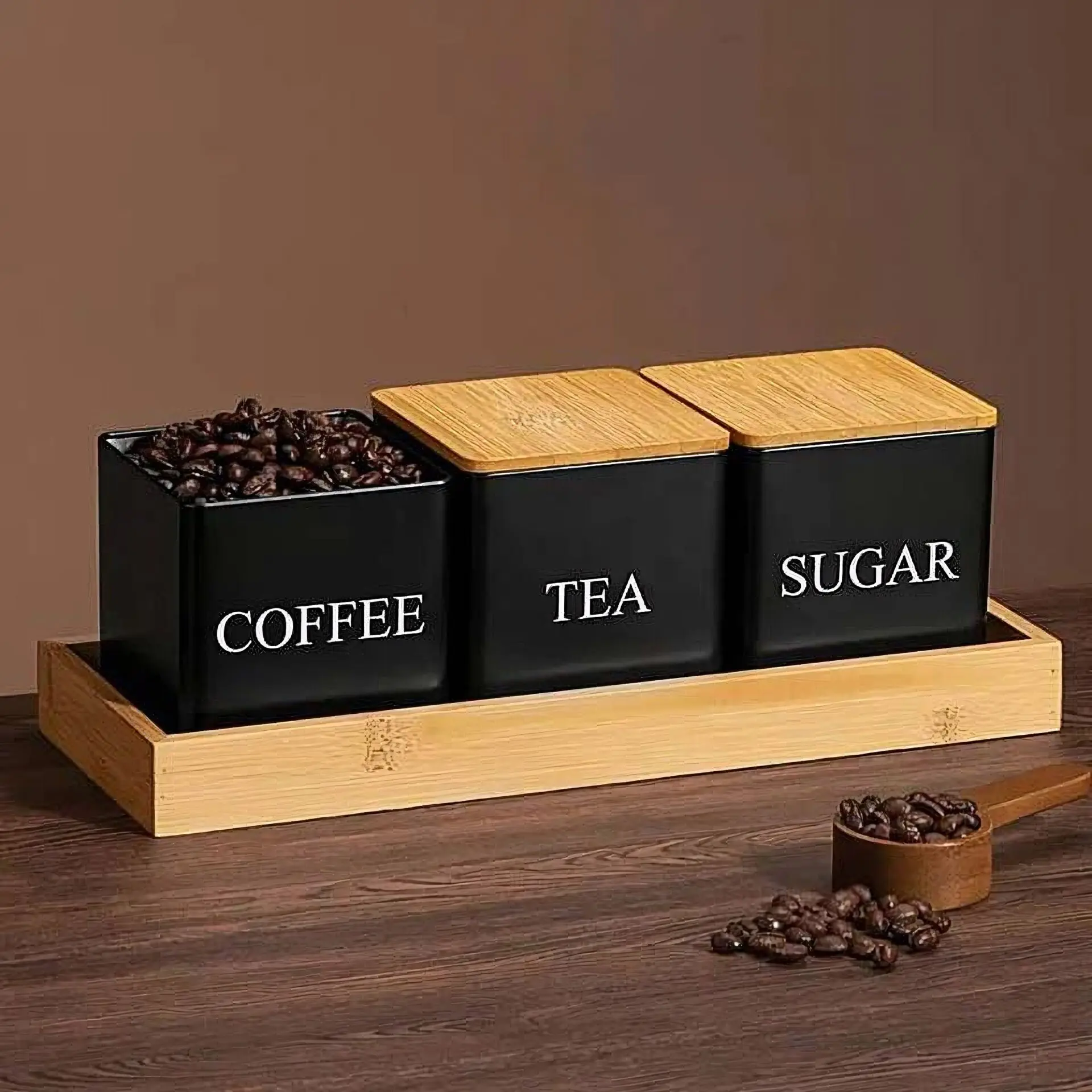 Aufbewahrungsbüchsen für Tee, Kaffee, Zucker kaufen – Stilvolle Organisation in der Küche mit Holztablett