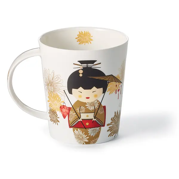 Die kunstvolle Gestaltung dieses Bone China Bechers bringt die traditionelle Schönheit der Geishas direkt in den Alltag. Ihr goldverzierter Kimono und das feine Schirm-Motiv verleihen der Tasse eine stilvolle Eleganz. Teehäuser und Aufführungen inspirierten das detailreiche Design, das nicht nur optisch ein Blickfang ist, sondern auch ein angenehmes Trinkgefühl vermittelt.