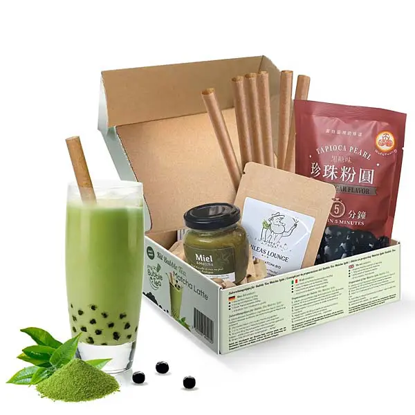 Komplettes Bubble Tea-Set, um hausgemachten Matcha Latte Bubble Tea zuzubereiten!