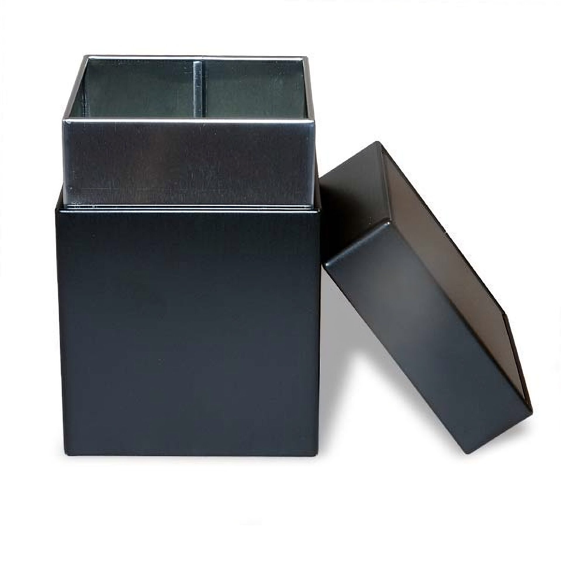 Die schwarze teedose überzeugt durch eine hochwertige Verarbeitung mit exakt gearbeiteten Ecken und Kanten. Mit den Abmessungen 78 x 78 mm und einer Höhe von 110 mm ist die eckige Aufbewahrungsdose 100g schwarz ideal auf häufig verwendete Mengen abgestimmt. Die robuste Wandung schützt den Inhalt zuverlässig. Jede Dose wird einzeln kontrolliert und erfüllt unsere hohen Qualitätsanforderungen bei TeeZyt.ch.
