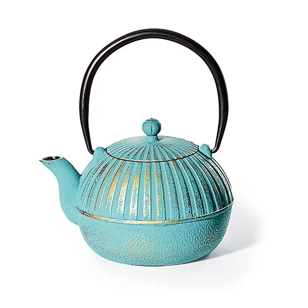 Eisengusskanne 0.8l Beijing Türkis-Gold kaufen – Traditionelles Design mit moderner Eleganz