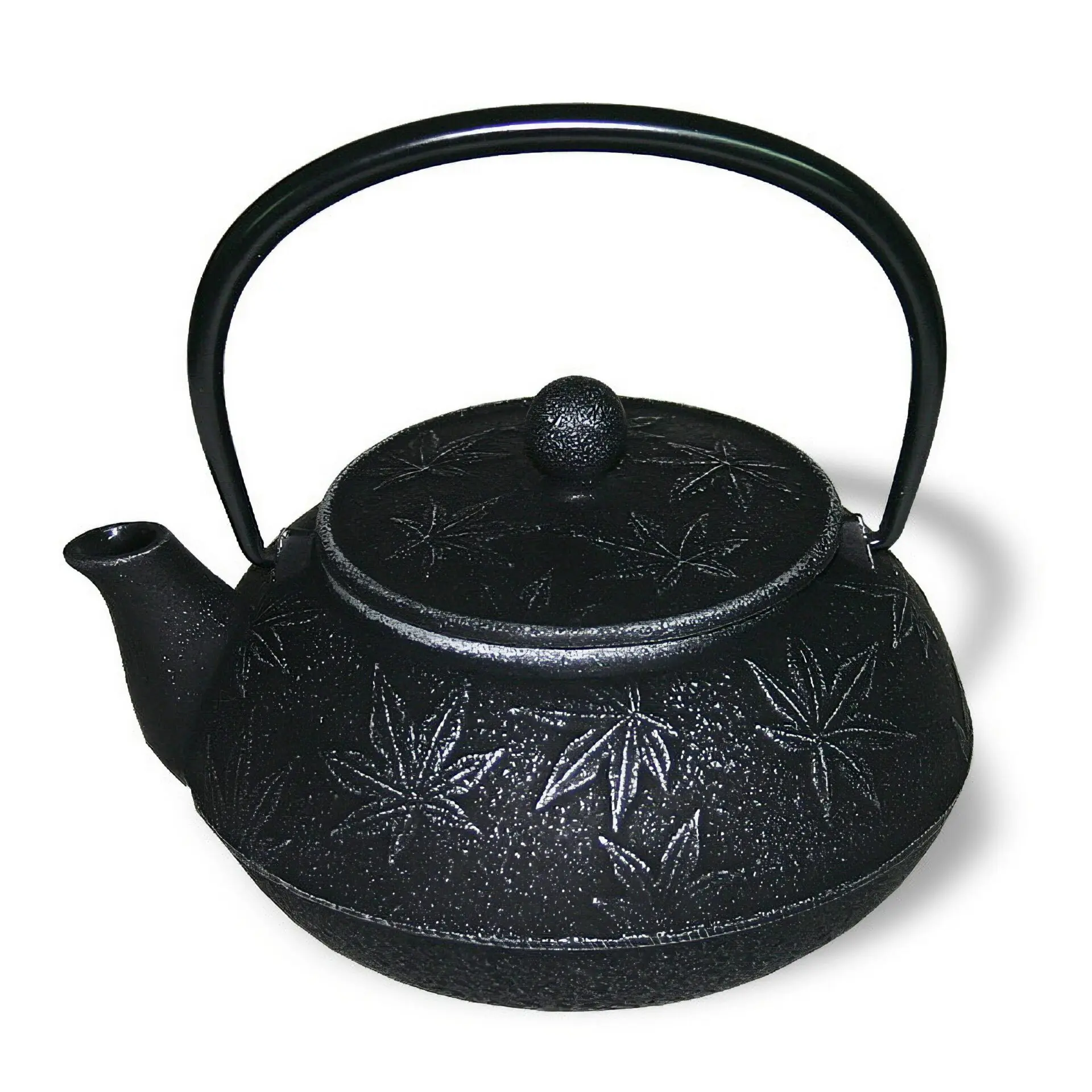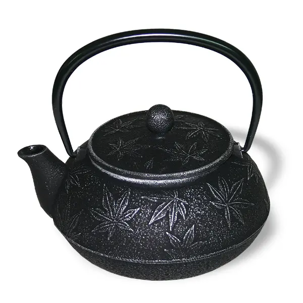Ein Bild von Eisengusskanne Japan - Hanfblatt - Schwarz / Silber (0.65 l), in der Kategorie Teekannen und Teesets Teekannen mit Sieb Kaufen Teekannen aus Gusseisen kaufen