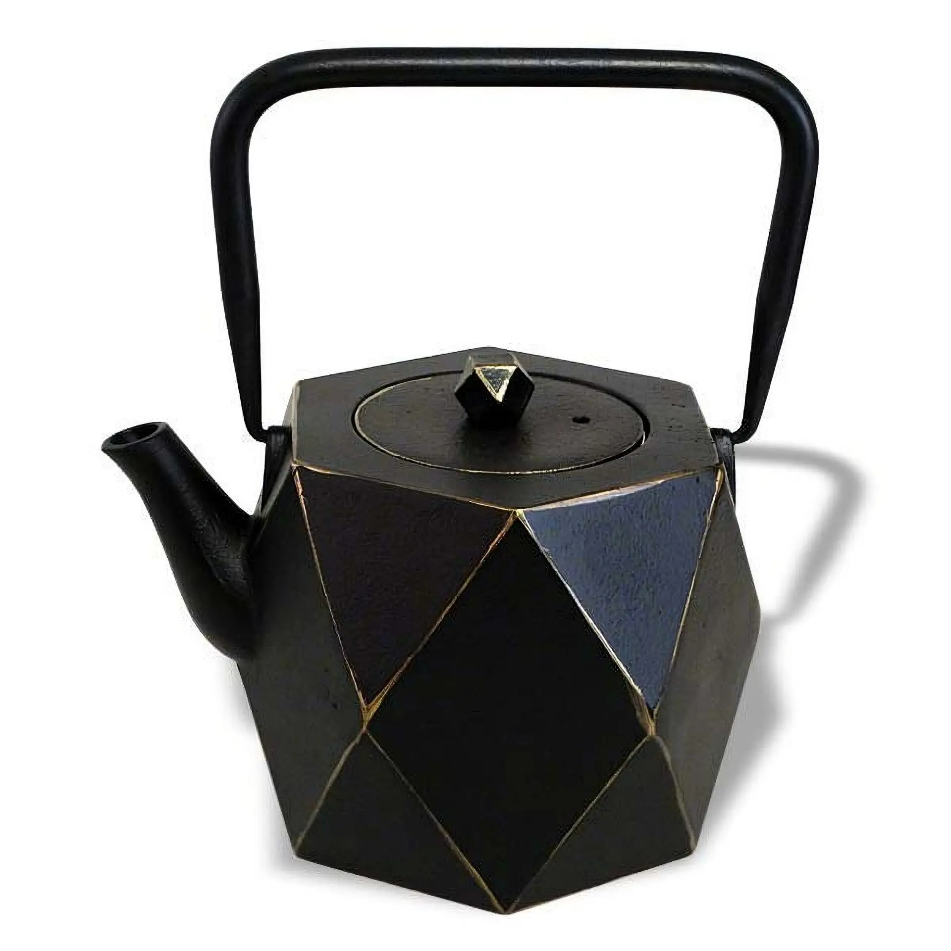 Diese Gusseisen-Teekanne überzeugt durch ihre elegante, geometrische Optik im Karo-Design.