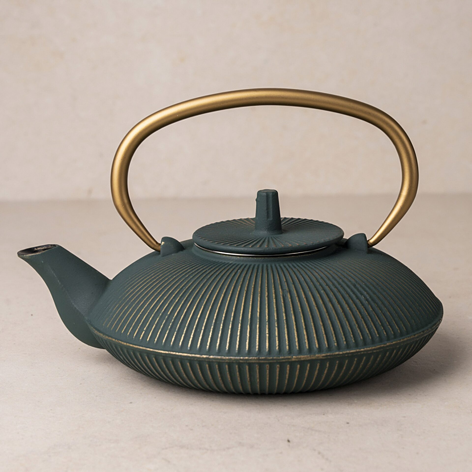 Diese stilvolle Gusseisenkanne verleiht jeder Teestunde einen Hauch von Luxus ? und das ganz wörtlich: Henkel und Relief glänzen in edlem Gold und setzen elegante Akzente zur tief dunkelgrünen Grundfarbe. Das harmonische Farbspiel verleiht der Kanne eine besonders hochwertige Ausstrahlung und macht sie zu einem echten Blickfang.