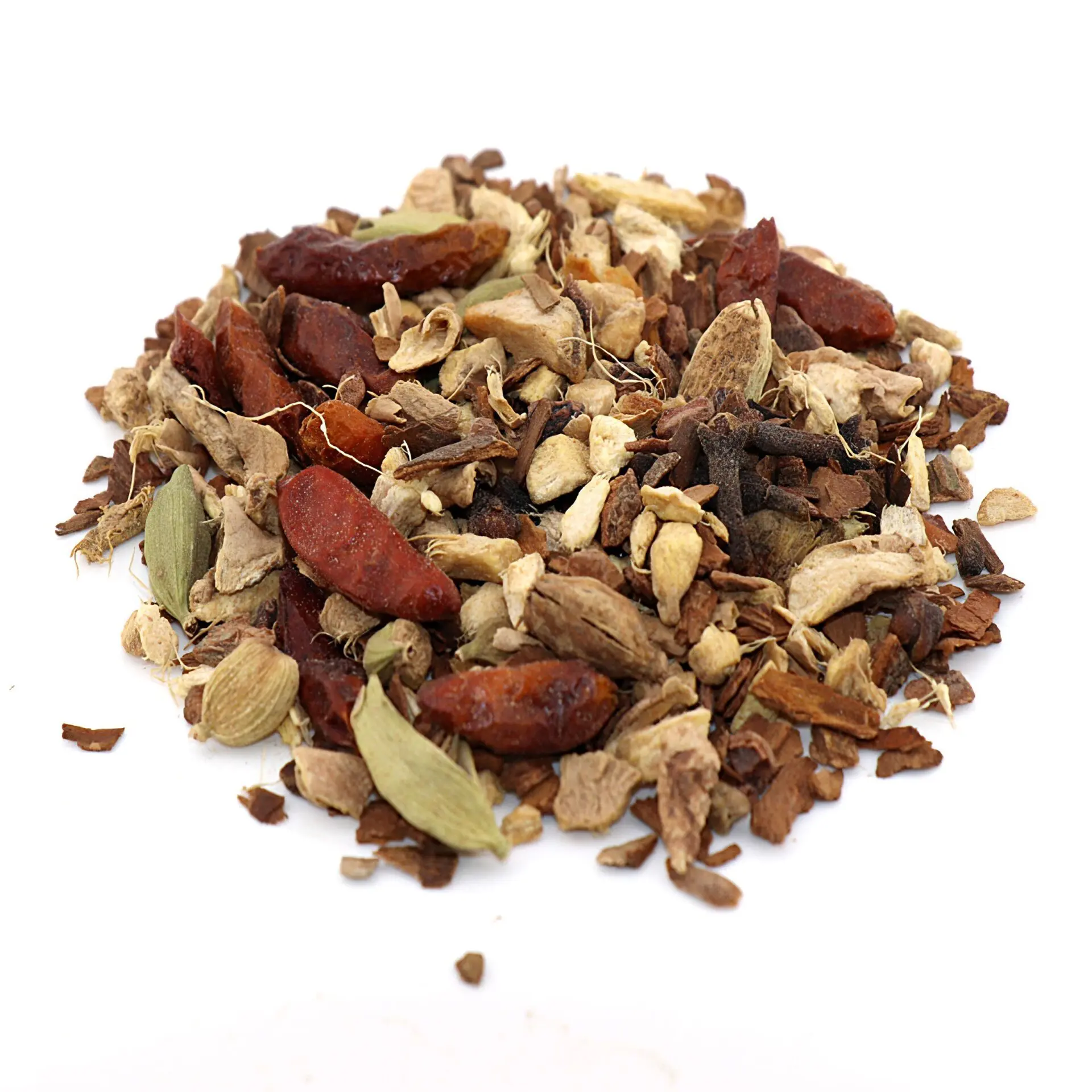 | Zutaten | Ingwer, Zimtstücke, ganzer Kardamom, Kardamomsaat, Nelken, Sternanis, ganze Chillischoten |