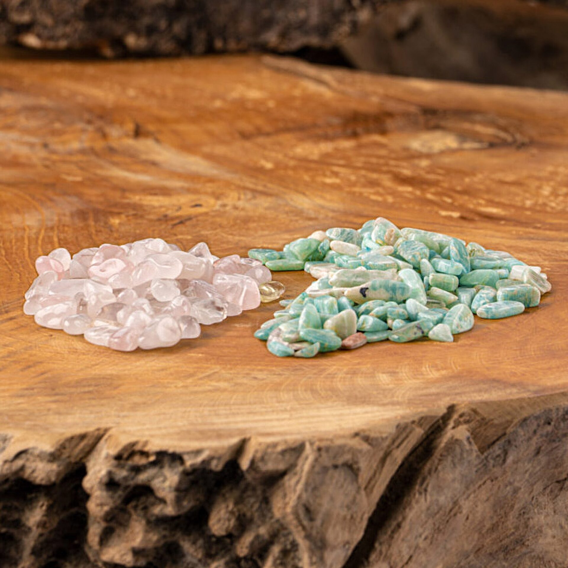 - Formschöne Edelsteinflasche mit Rosenquarz und Amazonit