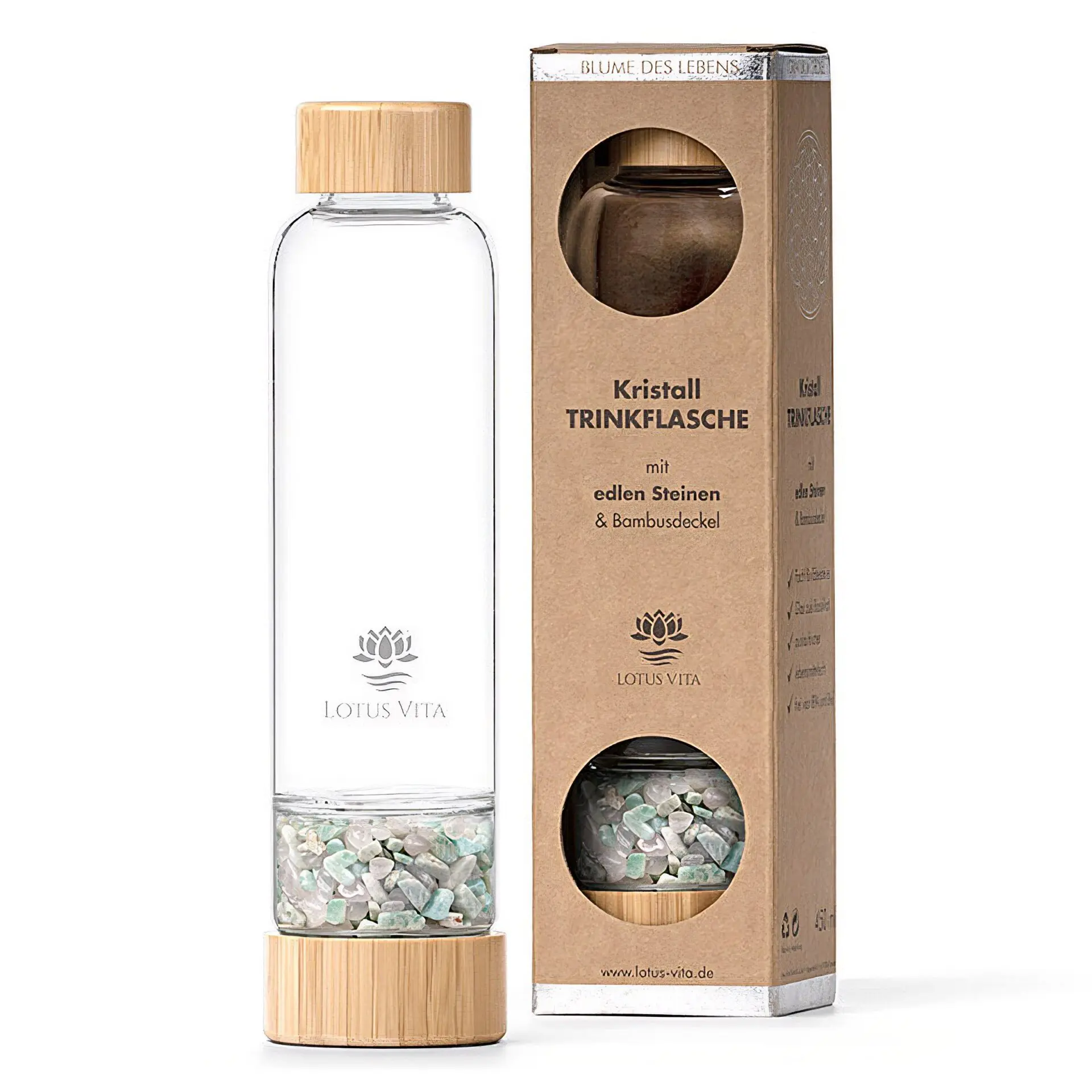 - Lotus Vita Trinkflasche mit Rosenquarz und Amazonit-Steinen