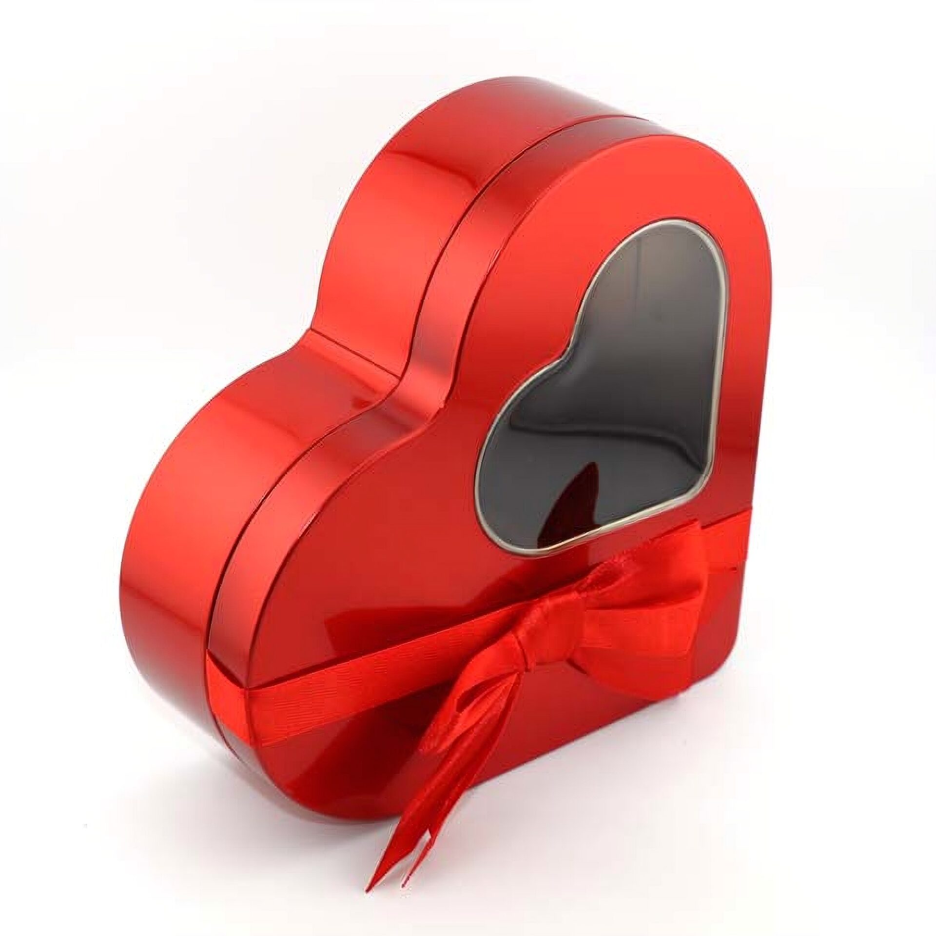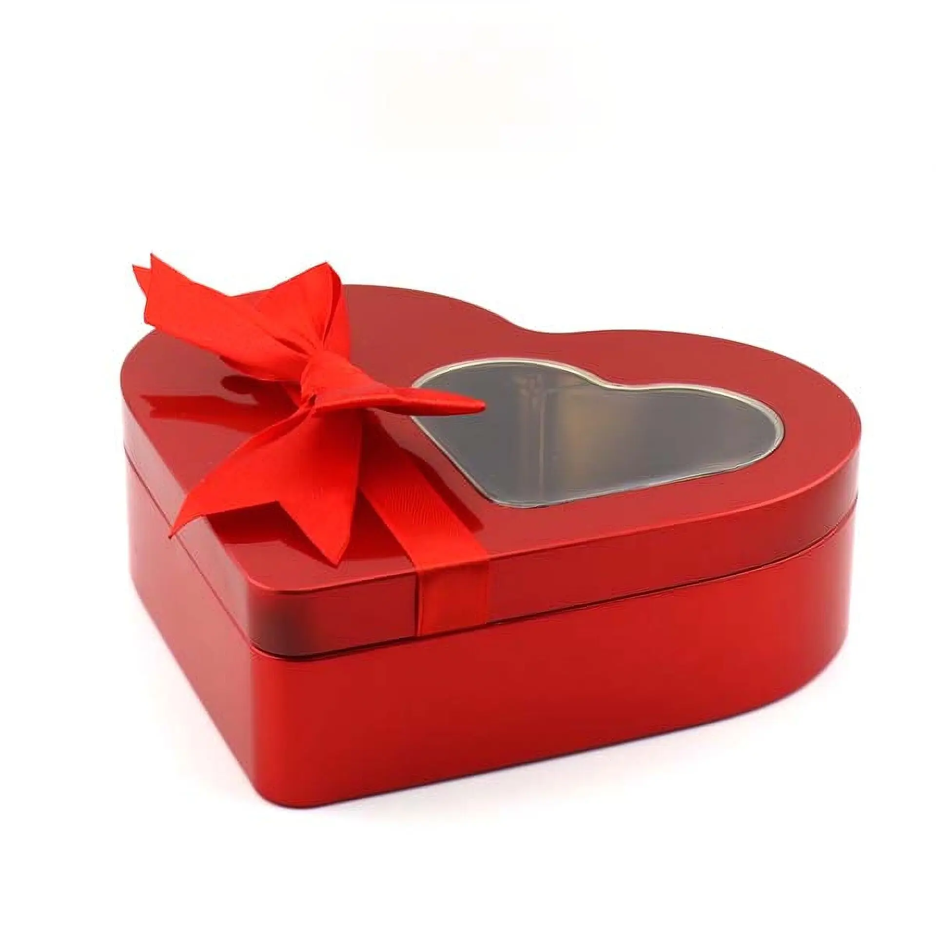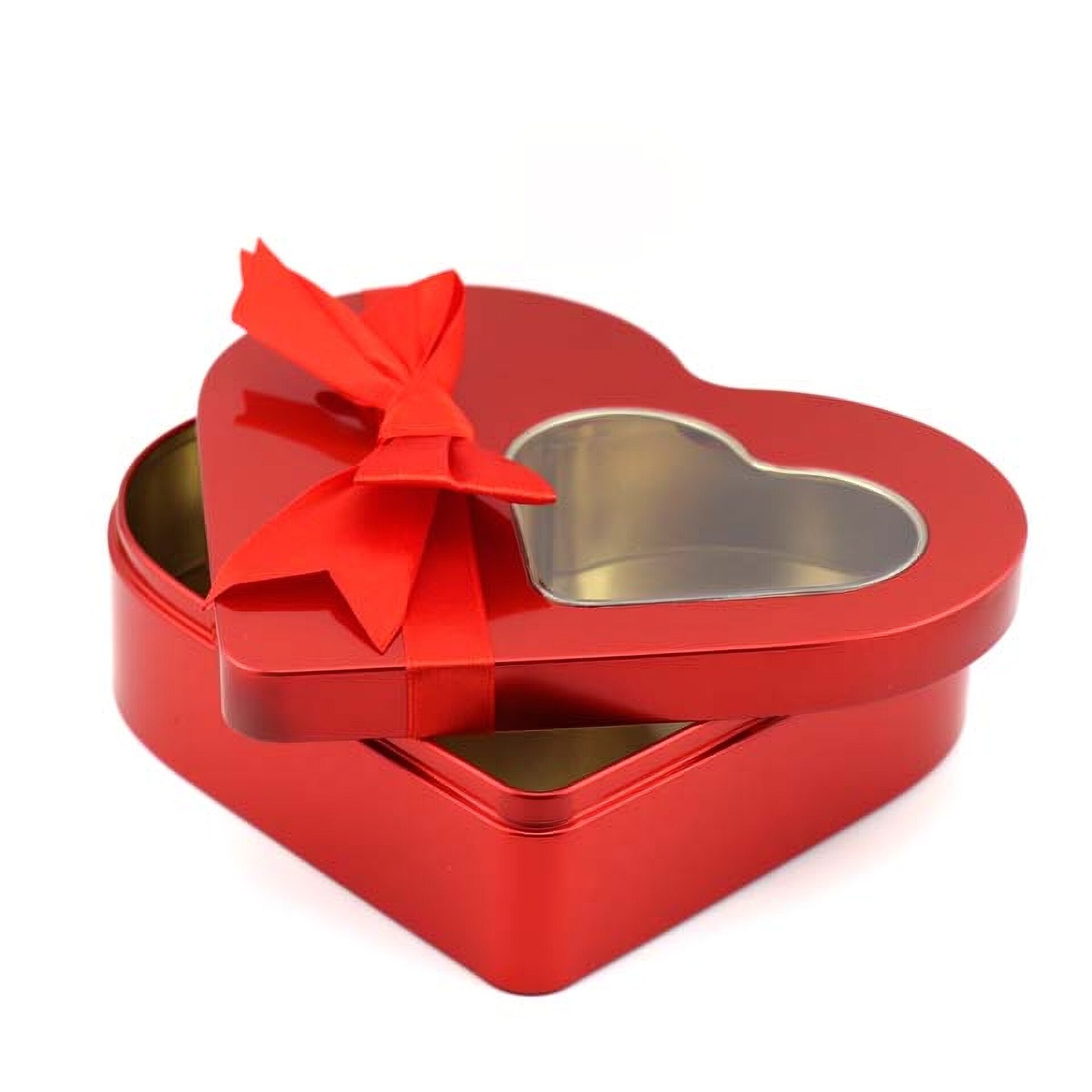 Herzdose mit Schleife kaufen – Stülpdeckeldose mit Sichtfenster aus Weissblech als elegante Geschenkverpackung