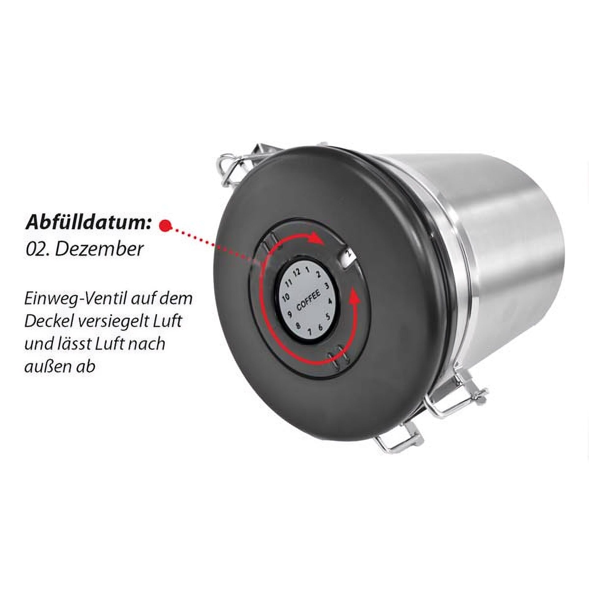 Ein innovatives Detail ist die im Deckel integrierte Datumsanzeige, mit der sich der Befüllzeitpunkt nachverfolgen lässt. Ergänzt wird das System durch ein spezielles Aromaventil, das überschüssige Gase entweichen lässt, ohne Sauerstoff eindringen zu lassen – ideal für kaffeeempfindliche Aromen. Damit wird die frischhalte aromadose zum perfekten Begleiter für jede Vorratshaltung.