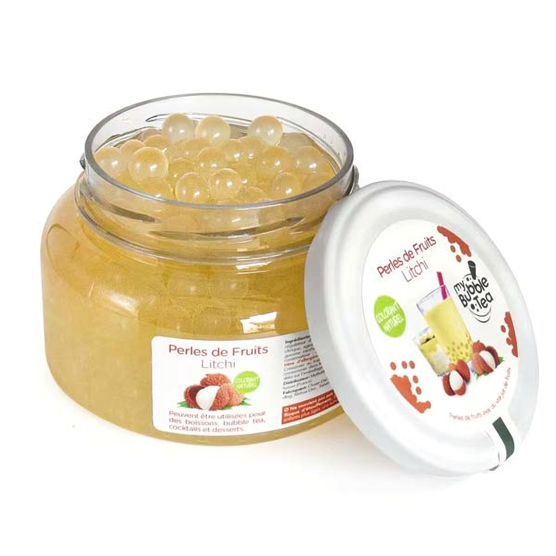 | Zutaten | Wasser, Fructose, Litschi – Saft (14.5%), Stärke, Säuerungsmittel: Calciumlactat, Säuerungsmittel: Citronensäure, Geliermittel: Natriumalginat, Verdickungsmittel: Xanthangummi, Litschi Aroma, Süssungsmittel: Sucralose, Konservierungsmittel: Kaliumsorbat. |