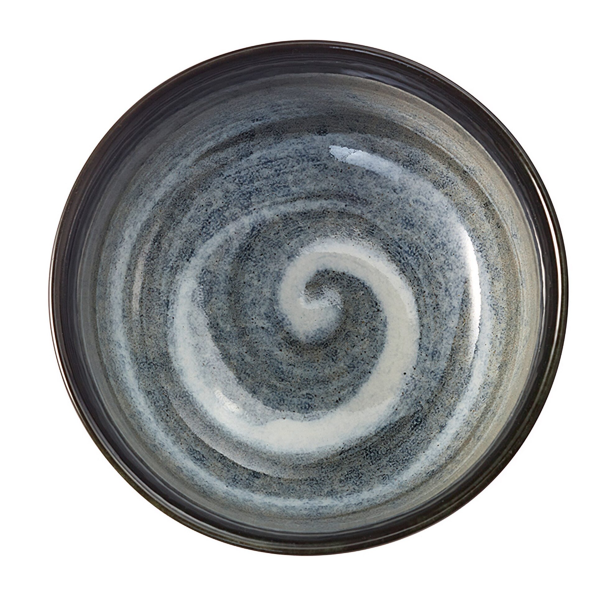 Dieses aus dem Buddhismus und Hinduismus stammende Symbol besteht aus drei Elementen und steht sinnbildlich für den Weg zur inneren Freiheit ? von der Unruhe über die Klarheit bis hin zur Erleuchtung. Umrahmt von der dunklen Porzellanoberfläche wird die Spirale zum meditativen Blickfang und verleiht der Schale eine besondere spirituelle Tiefe.