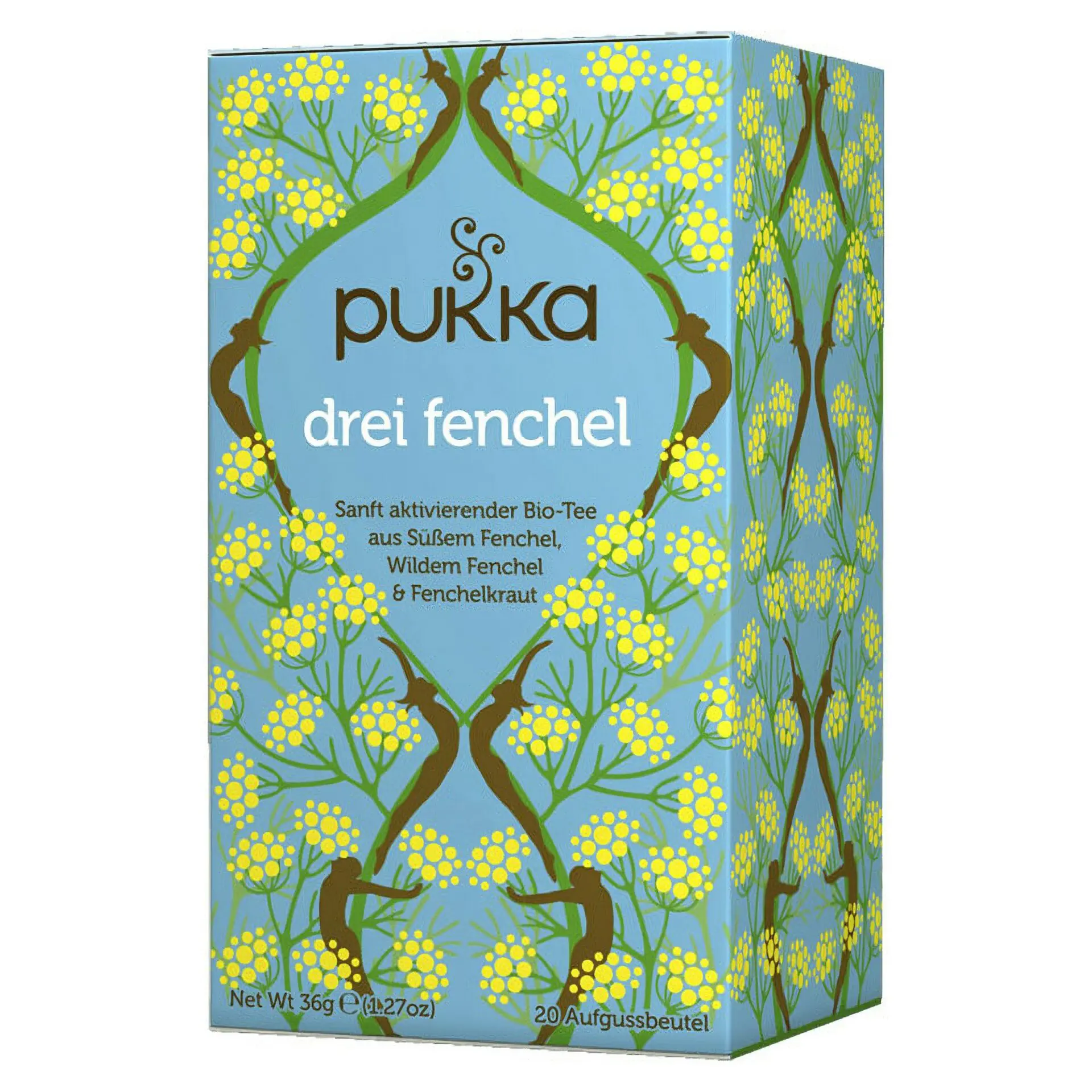 Ein wohltuender Kräutertee Pukka, der aus drei Fenchelsorten hergestellt wird – Süssfenchelsamen, Wildfenchelsamen und Fenchelblätter – und mit seinem aromatischen, leicht süsslichen Geschmack begeistert.