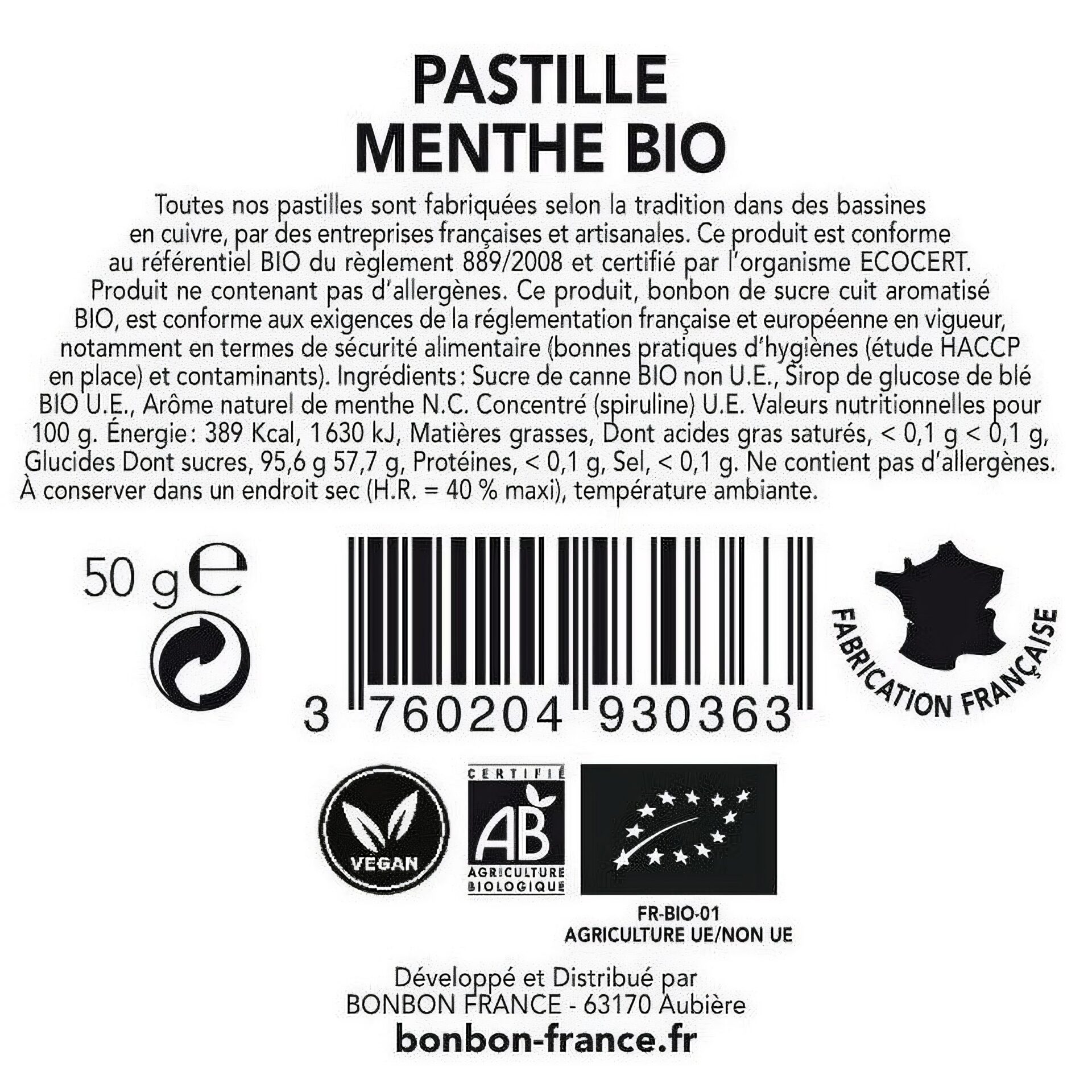 - Bio-zertifizierte Minzbonbons – kontrollierte Qualität nach FR-BIO-01