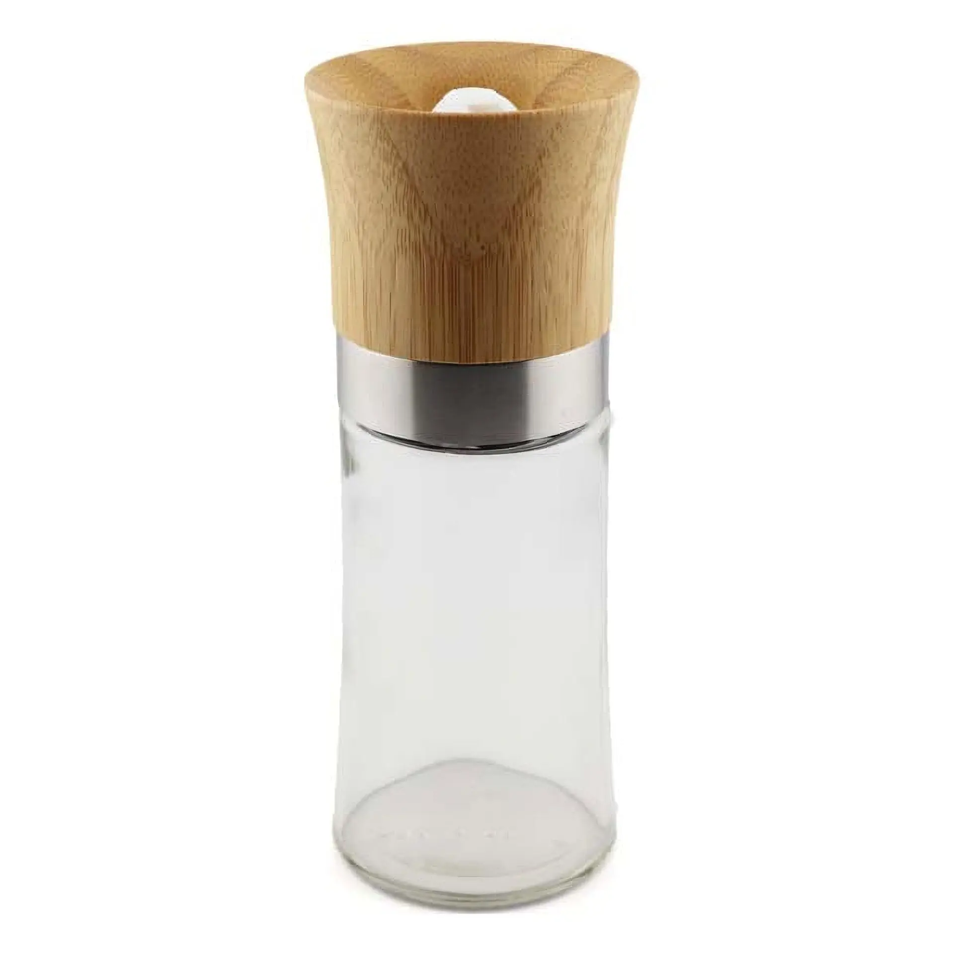 Der obere Teil der Mühle besteht aus robustem Bambus, während der Unterteil aus klarem Glas gefertigt ist, das den Füllstand stets sichtbar macht. Ob feine Kräuter, aromatische Gewürze oder verschiedene Salze ? alles lässt sich mit dieser Mühle mühelos und zuverlässig verarbeiten.