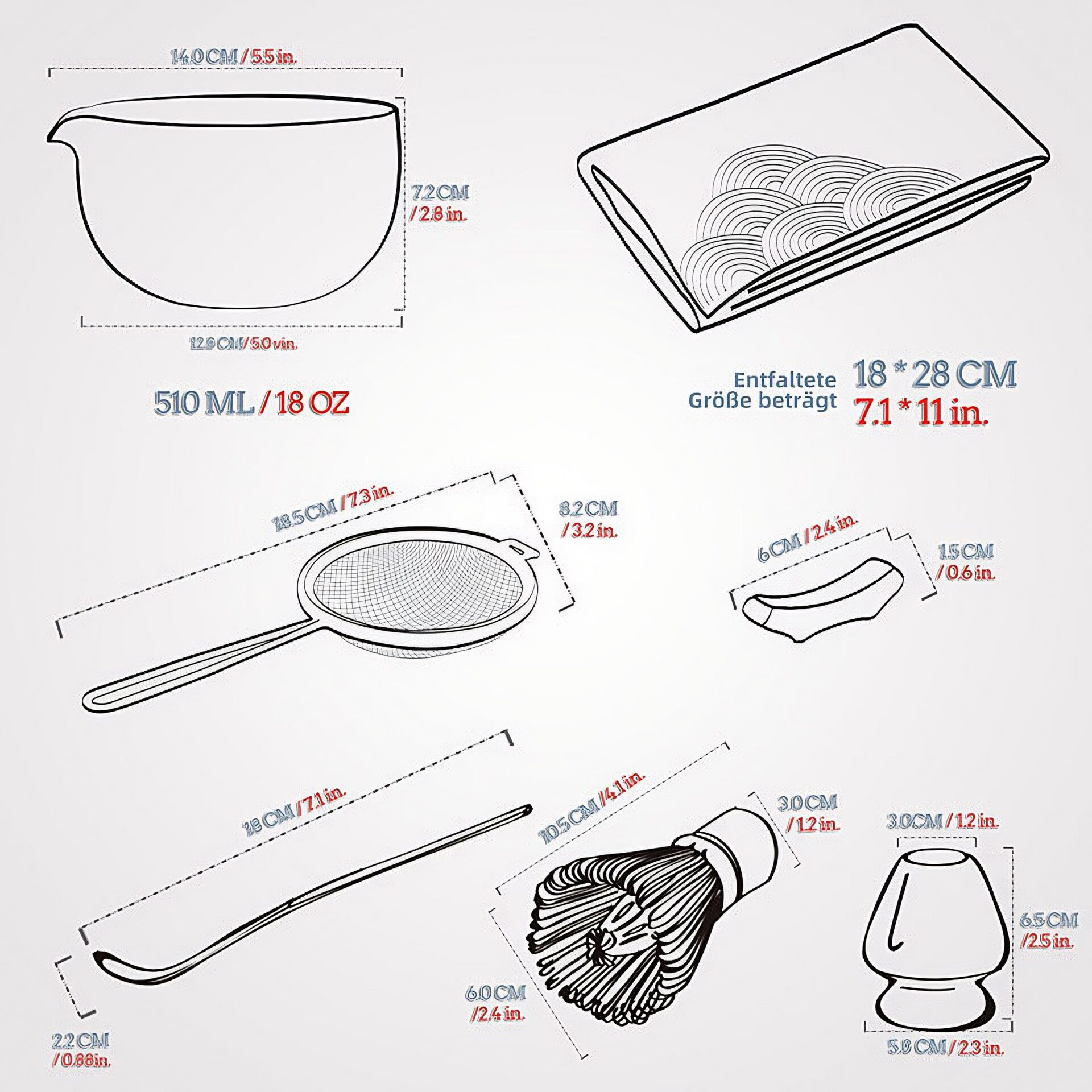 - Komplettes Matcha Tee-Set mit 7 originalen Zubehörteilen