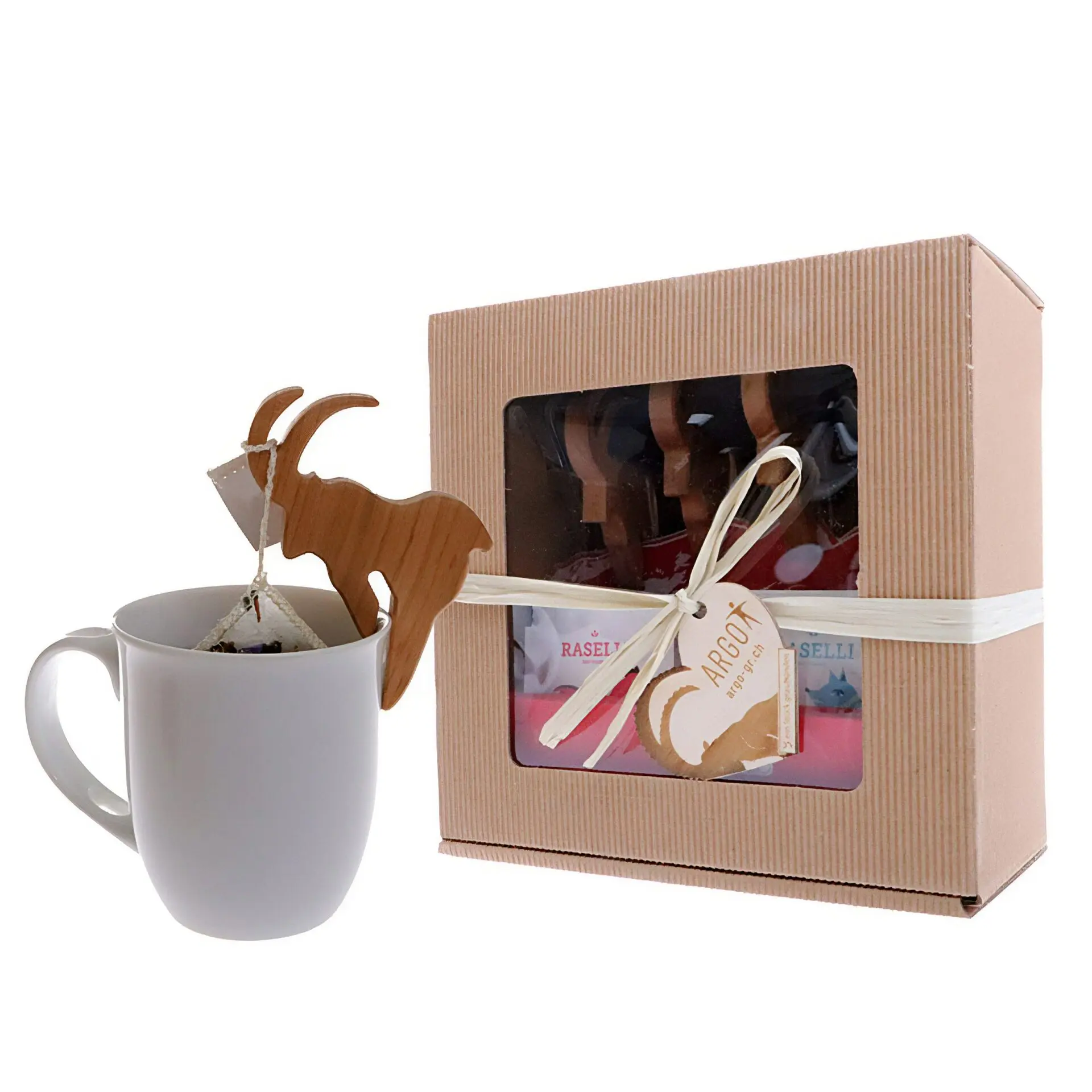 Dieses Steinböckli Teezubehör Geschenkset überzeugt mit einer harmonischen Kombination aus Naturmaterialien und stilvollem Handwerk. Der praktische Teebeutelhalter sorgt dafür, dass kein Tropfen Tee daneben geht, während das kunstvolle Design jeder Tasse eine besondere Note verleiht.