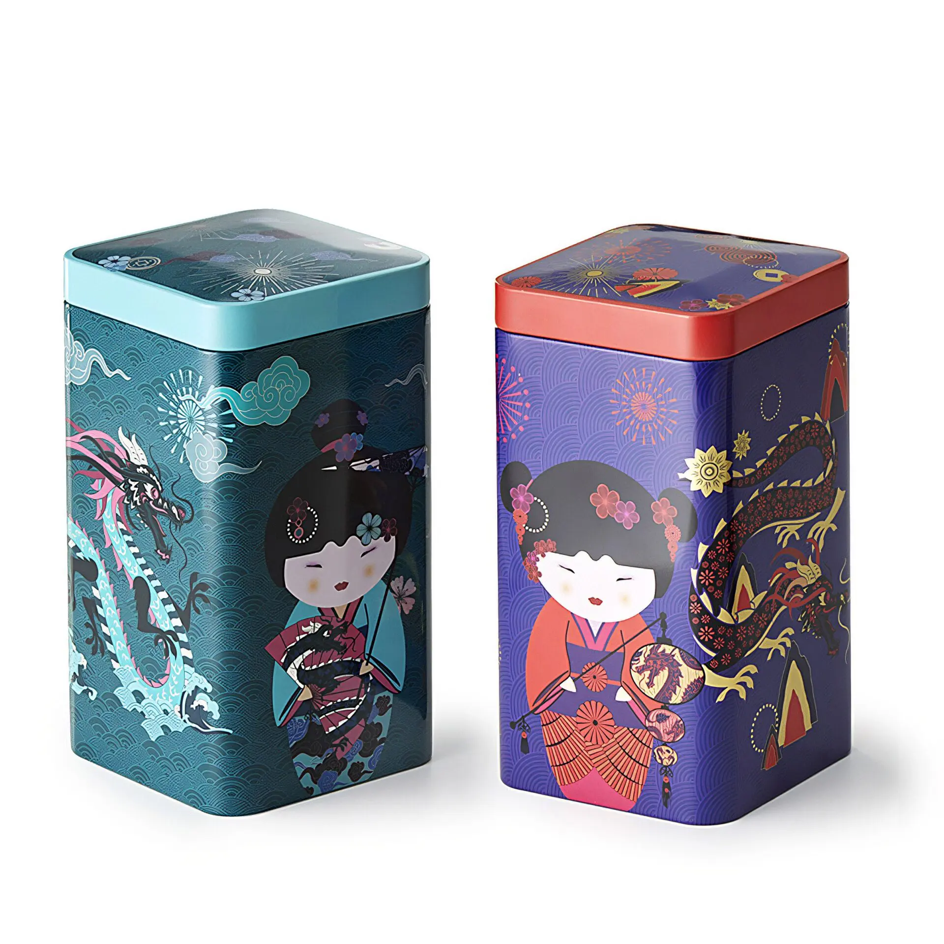 Diese elegante Weissblechdose vereint fernöstliche Ästhetik mit kunstvoller Detailverarbeitung. Im Mittelpunkt des dekorativen Designs stehen zwei anmutige Geishas, die für Eleganz, Kultiviertheit und die jahrhundertealte japanische Unterhaltungskunst stehen. Ihre prächtig verzierten Kimonos mit traditionellen asiatischen Mustern und Stickereien zeugen von meisterhaftem Handwerk und liebevoller Detailarbeit.