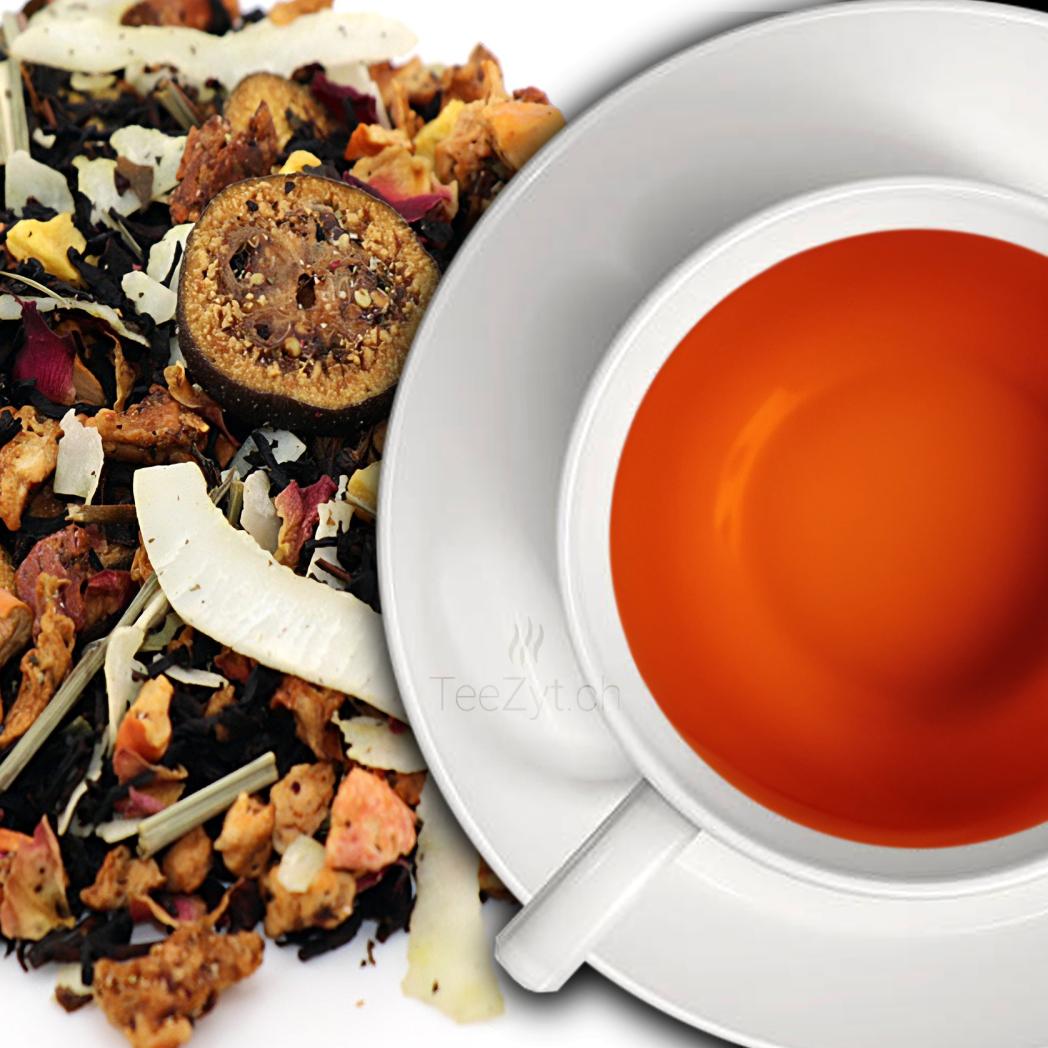 Aromatisierte Schwarzteemischung mit Feijoa-Kokos-Maracuja-Note