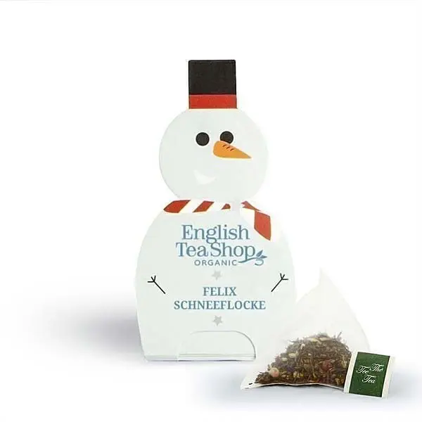 Mit dem Weihnachtsgeselle Schneemann «Felix Schneeflocke» – Bio bietet TeeZyt.ch einen wundervoll aromatischen Bio-Früchtetee, der sowohl geschmacklich als auch optisch überzeugt. Dieser weihnachtliche Tee ist im liebevollen Schneemann-Design gestaltet und stellt das ideale Geschenk für die kalte Jahreszeit dar. Geliefert in praktischen Pyramidenbeuteln, vereint dieser Tee himmlische Aromen von Hibiskus, Rooibos und Spearmint, bereichert durch fruchtige Noten von Himbeeren, Erdbeeren und Blaubeeren.